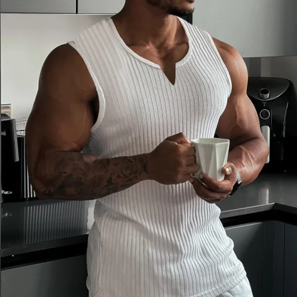 Le top-débardeur à rayures pour salle de sport est l’allié idéal pour vos entraînements estivaux. Son design à col en V offre une touche élégante tout en assurant une liberté de mouvement optimale. Conçu pour les hommes actifs, ce débardeur sans manches combine style et fonctionnalité.